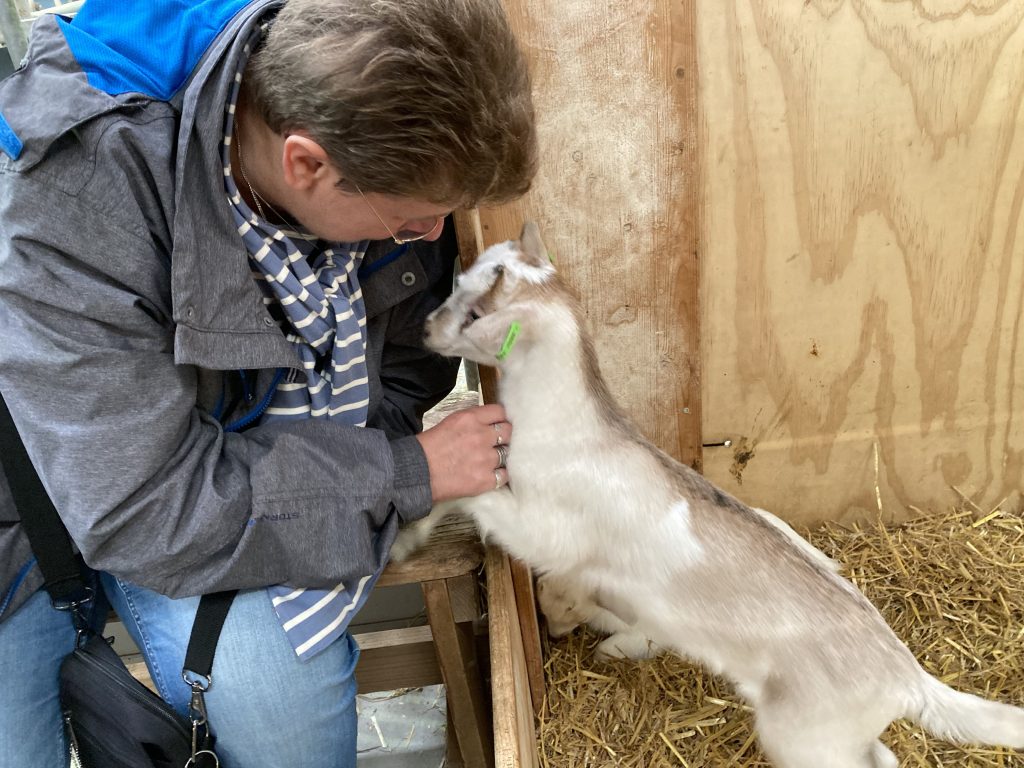 Daarna was het tijd voor een rondleiding over het bedrijf, met alle gelegenheid om te proeven van de heerlijke geitenkaas én het minstens zo lekkere geitenijs. Sommigen lieten zich de kans niet ontgaan lammetjes te knuffelen!