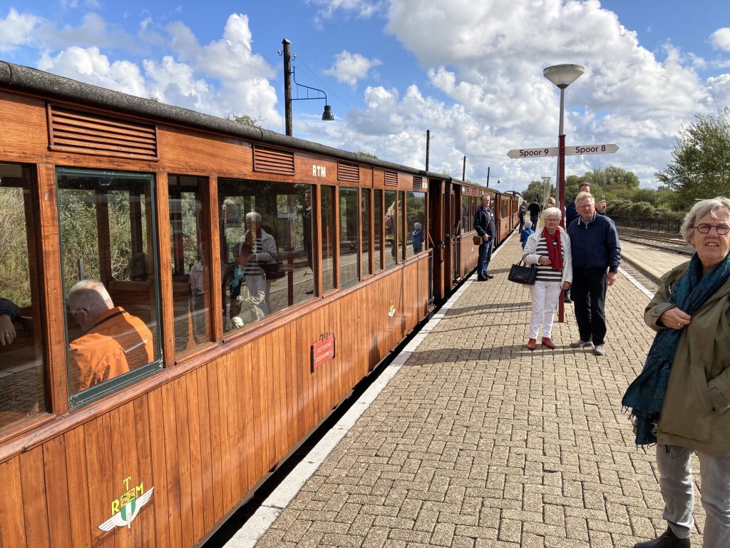 Intussen brak de zon door boven Goeree! Dat kwam prima uit, want de volgende stop was de remise van de RTM, waar historische trams rijdende worden gehouden. Daar genoten we een lekkere lunch en stapten toen in een van de klassieke trams voor een rit door de duinen en over de Brouwersdam. Dat was een waar feest, met zicht op de schuimende golven, spectaculaire toeren van windsurfers en imposante wolkenluchten met daarin een stralende zon.